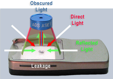 Here is the hand-held version of the AGS (American Gem Society) ASET,with backlight. The diamond is placed on the backlight and the unit is placed over the diamond.
